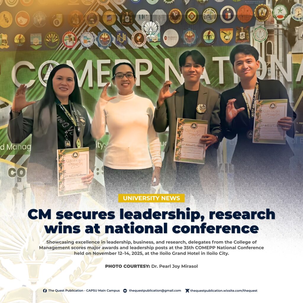 Showcasing excellence in leadership, business, and research, delegates from the College of Management scores major awards and leadership posts at the 35th Council of Management Educators and Professionals of the Philippines (COMEPP) National Conference held on November 12–14, 2025, at the Iloilo Grand Hotel in Iloilo City.