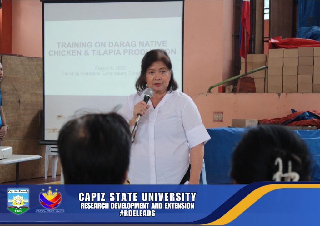 Capiz State University, through its Research, Development, and Extension (RDE) Office, conducted a training session on Darag Native Chicken and Tilapia production last August 8, 2025, in the Municipality of Dumalag, Capiz. A total of 130 beneficiaries from various barangays in Tapaz, Cuartero, and Dumalag participated in the training.